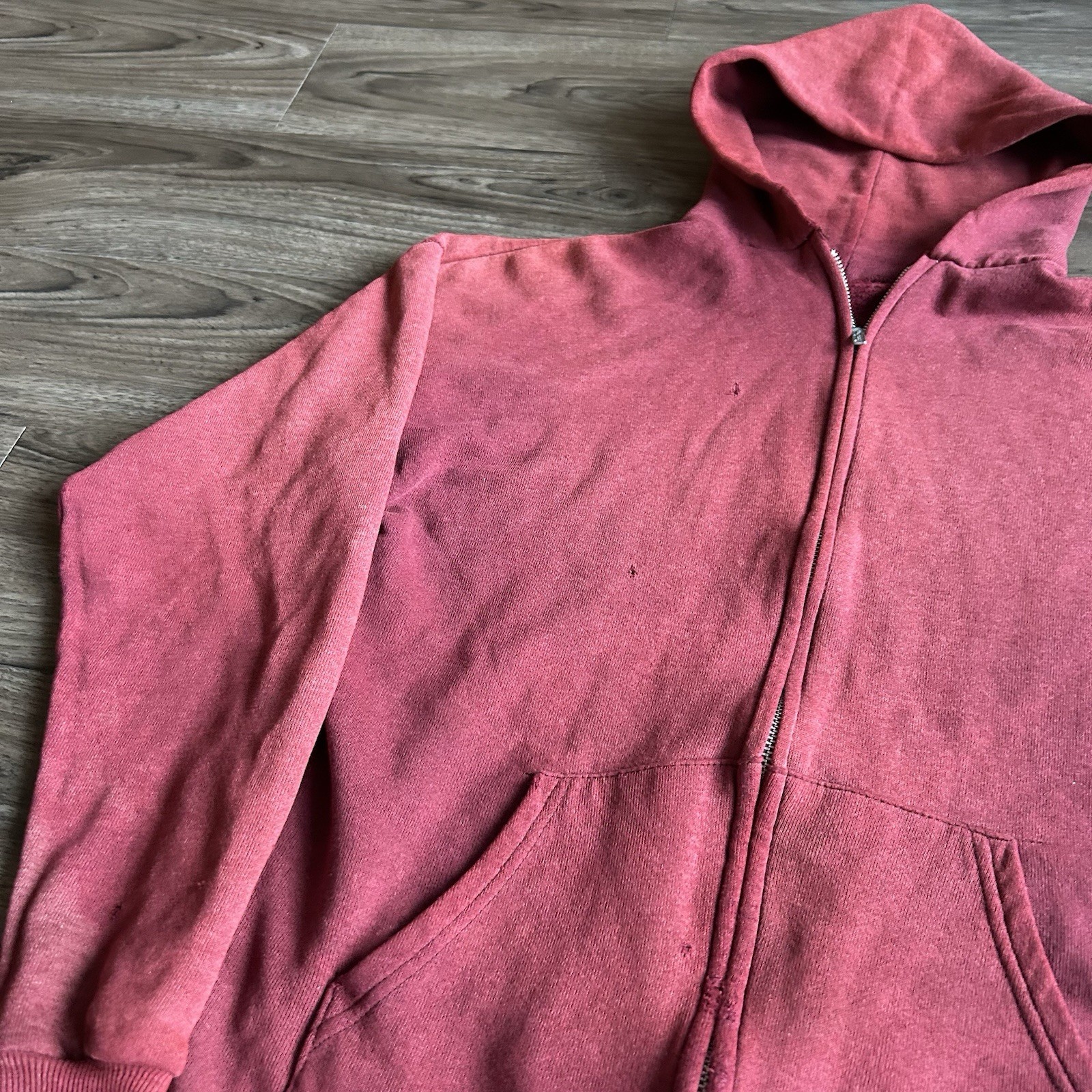 70s/80s Vintage Red Sun Faded Distressed Zip Up Hoodie Sz L
