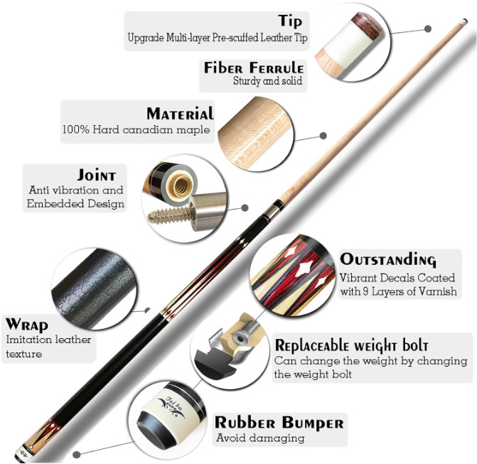 Palo De Billar Para Taco De Billar De Titanio Metalico 20 oz Red 58 NUEVO US