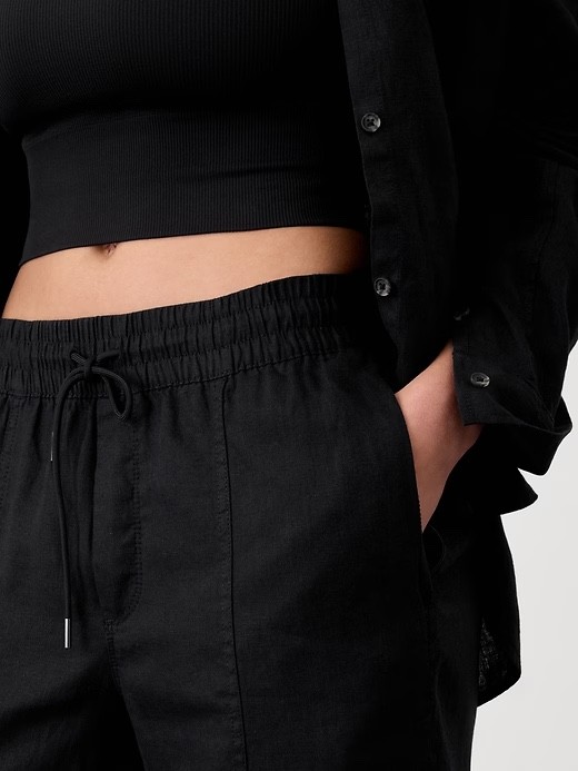 как выглядит ATHLETA Retreat High Rise Linen Ankle Pant ST Small Tall S T Black 658556 NEW фото