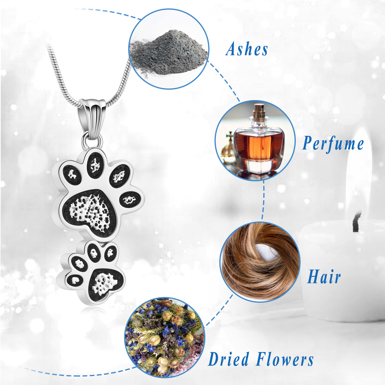 Pet Cremation Necklace for Ashes Dog/cat Paw Memorial Urn Necklace Ashes Holder