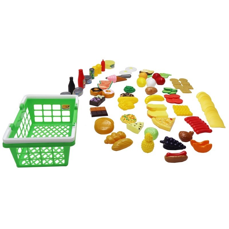как выглядит 100 Piece Toddler Play Food Set Shopping Basket Pretend Cooking Toys Ages 3 New фото