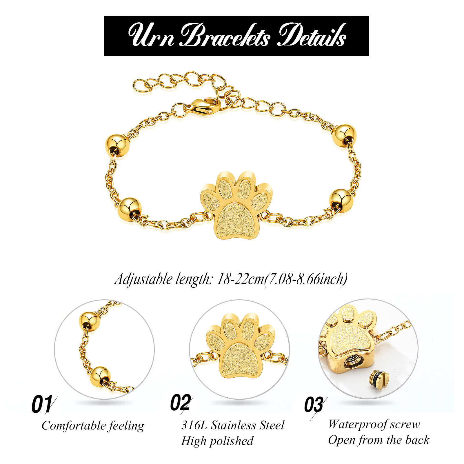 Pet Cremation Urn Bracelet for Ashes Paw Print Cremation Bracelet for Dog / Cat