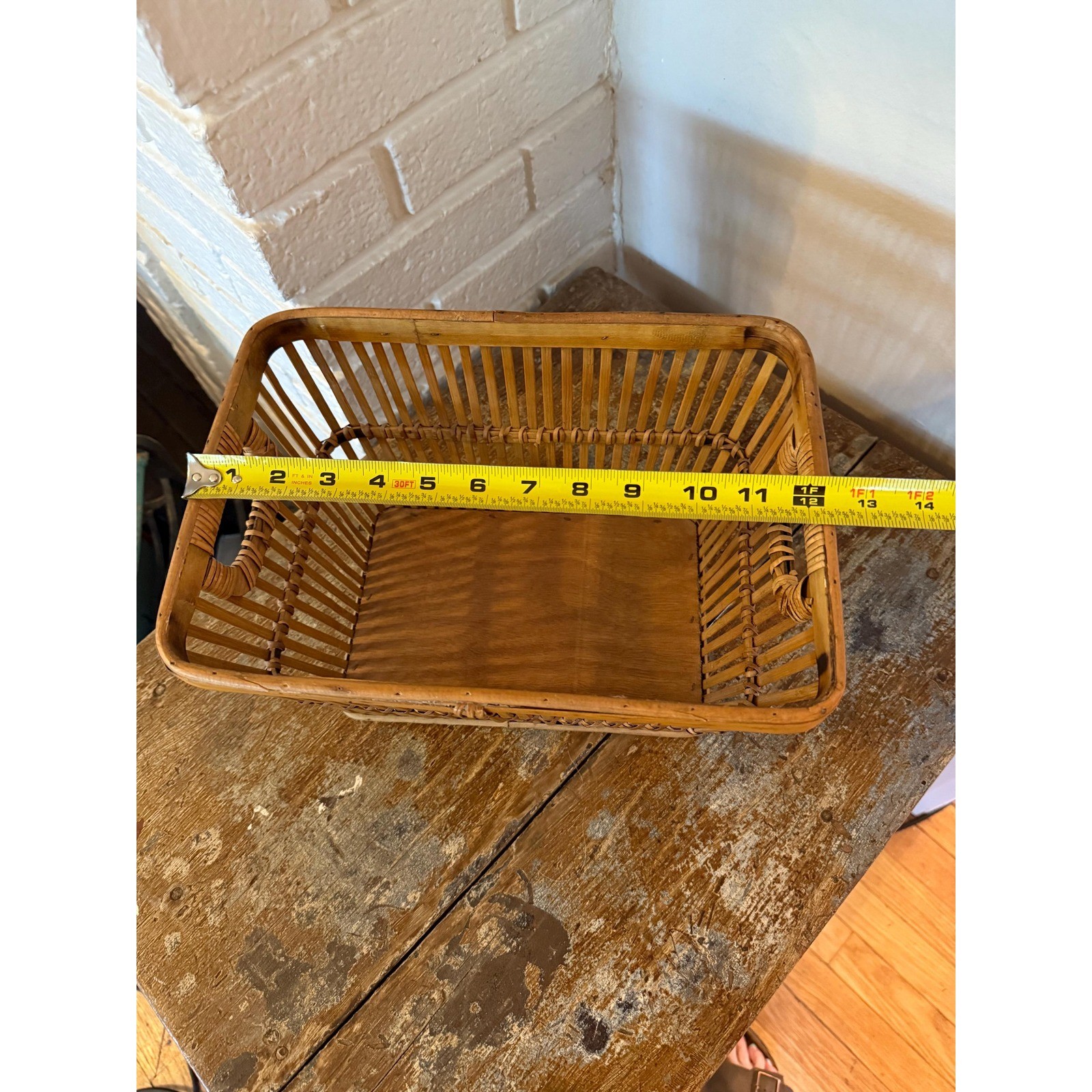 как выглядит Vintage rustic bamboo basket with handles 12"x7.5"x8" фото
