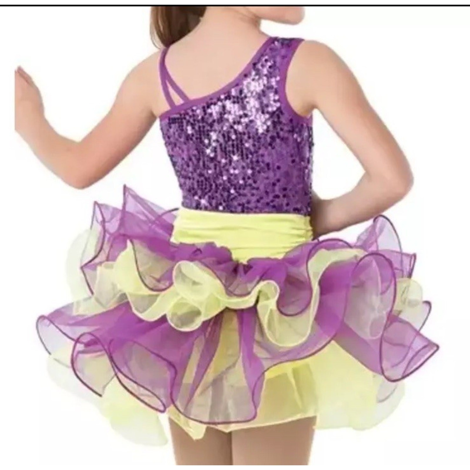 как выглядит WEISSMAN Twist My Hips 8763 PURPLE YELLOW Sequin Curly Hem Tutu Dress Large Chil фото
