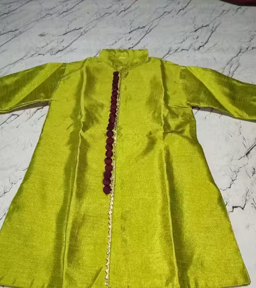 как выглядит Trendy Silk Blend Kurta Dhoti Set boys Boys Kurta Set Green Festive Kurta Dhoti фото