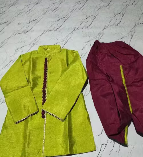 Trendy Silk Blend Kurta Dhoti Set boys Boys Kurta Set Green Festive Kurta Dhoti