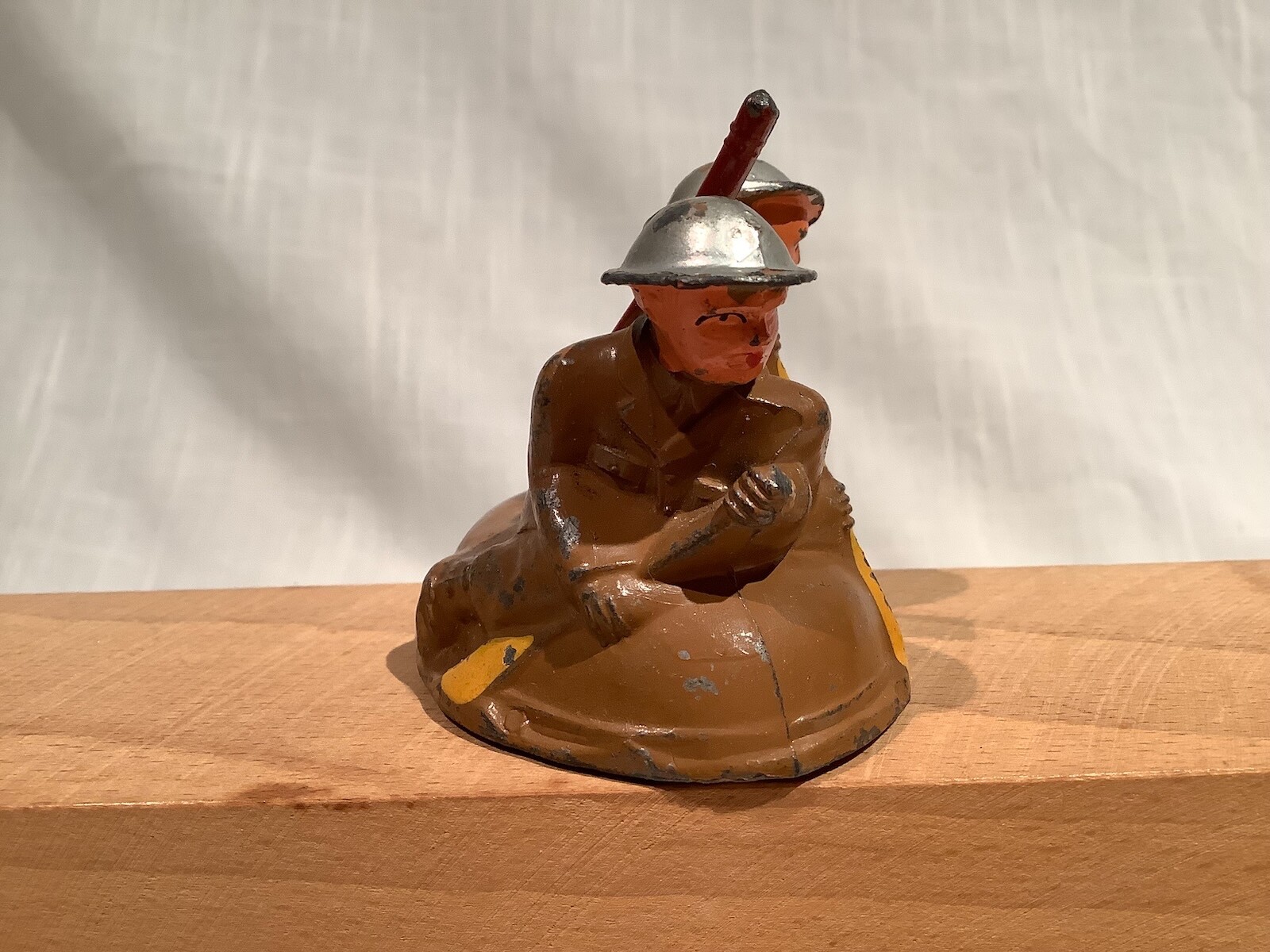 как выглядит BARCLAY B142 TWO SOLDIERS ON A RAFT, CAST HELMETS, CIRCA 1940, EXCELLENT фото