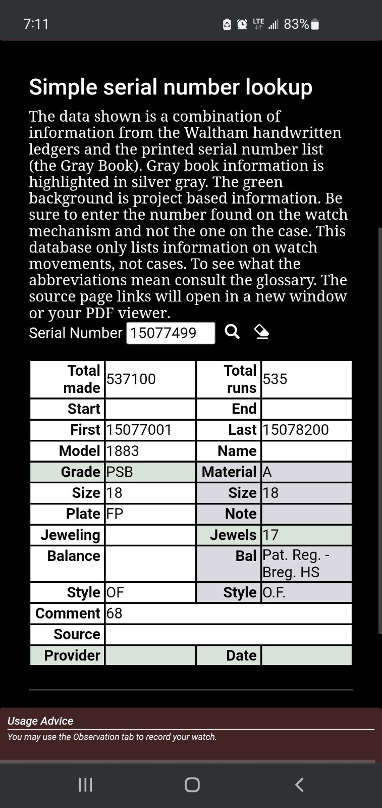 Waltham 1890s P.S. Bartlett Model 1883 Pocket Watch 18s/17j. 15077499 works