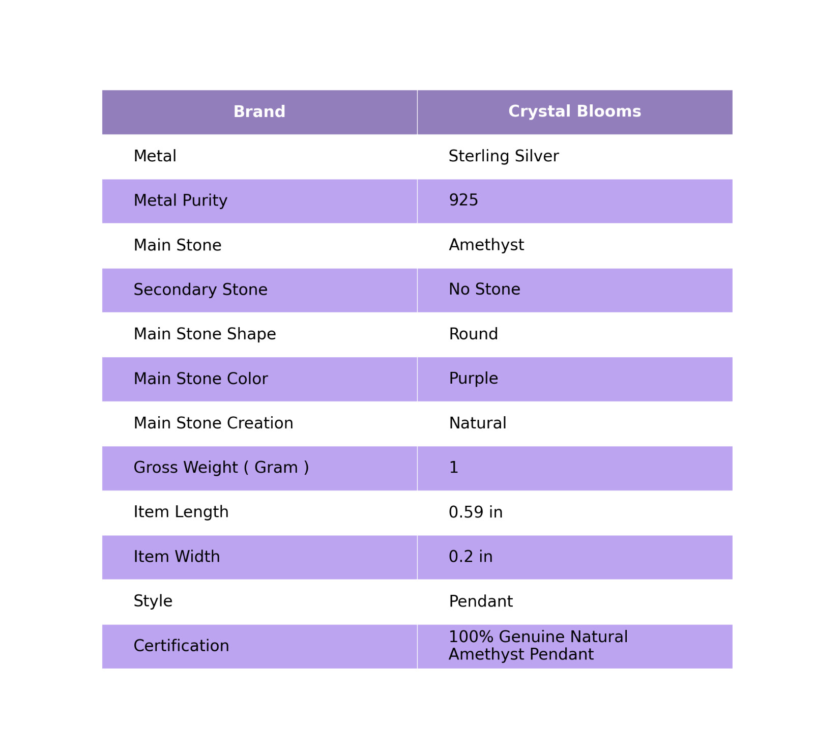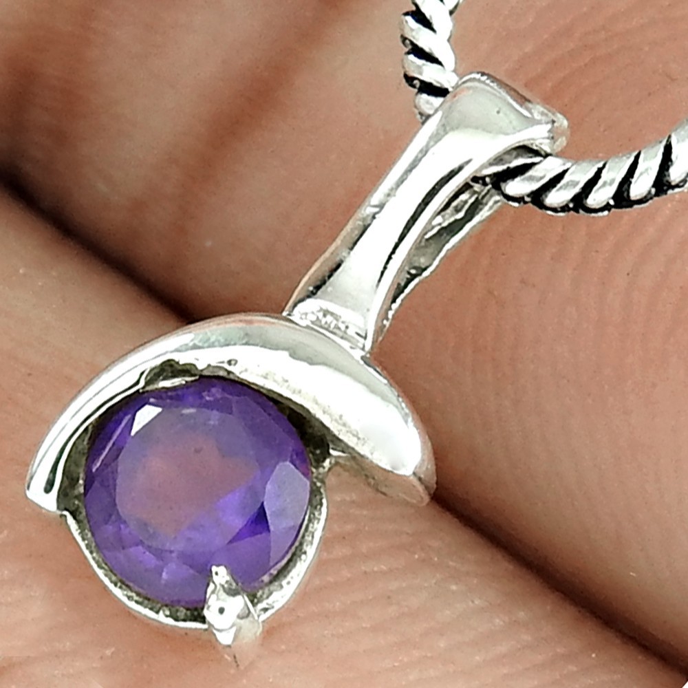 Solid Silver Amethyst Stone Anniversary Sister Birthday Engagement Bezel Pendant