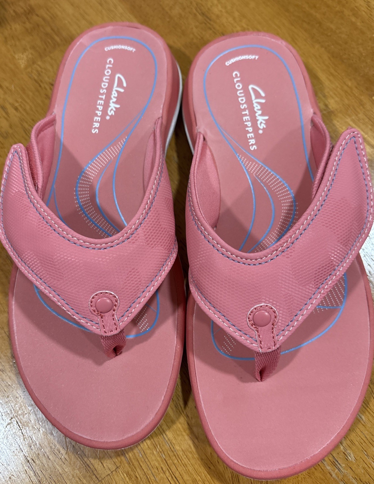 NEW CLARKS Women's Cloudsteppers Glide Post Strawberry Pink Flip Flops Size 7M