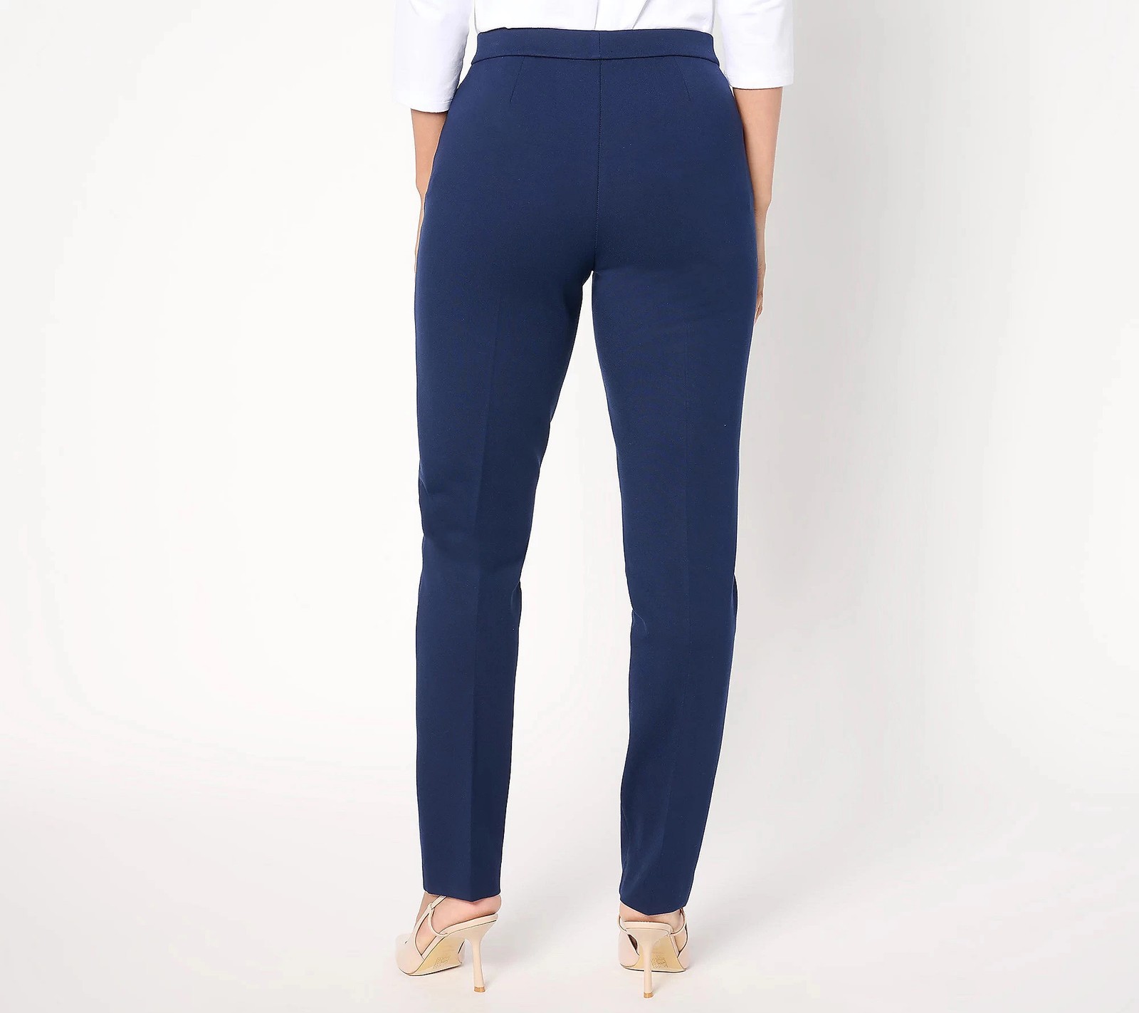 Susan Graver Regular Smart Ponte Slim Leg Trouser Pants Navy S New