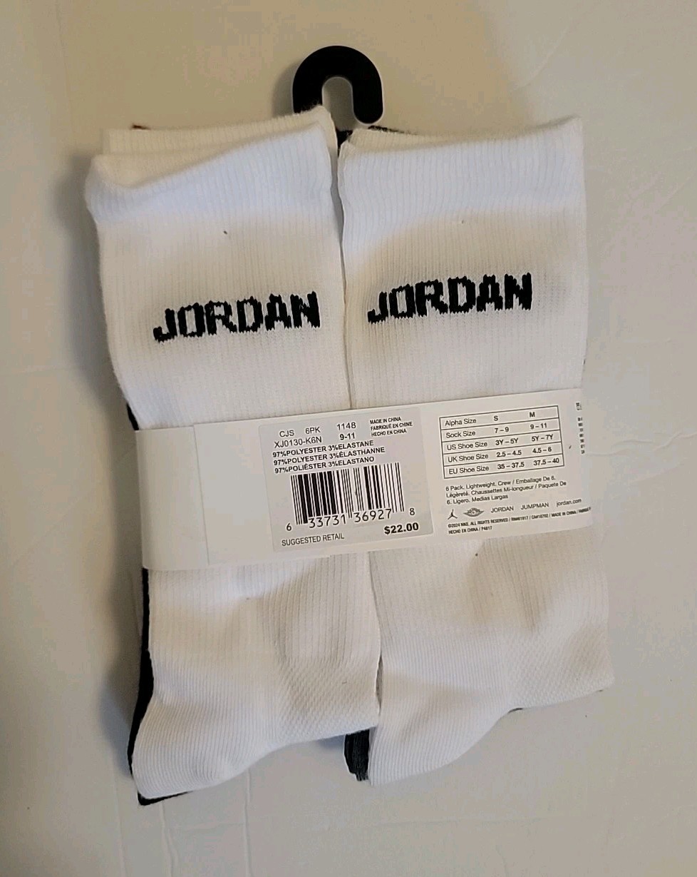 как выглядит New 6 pair Pack Nike Jordan Lightweight Crew Socks Unisex YTH 5Y-7Y фото