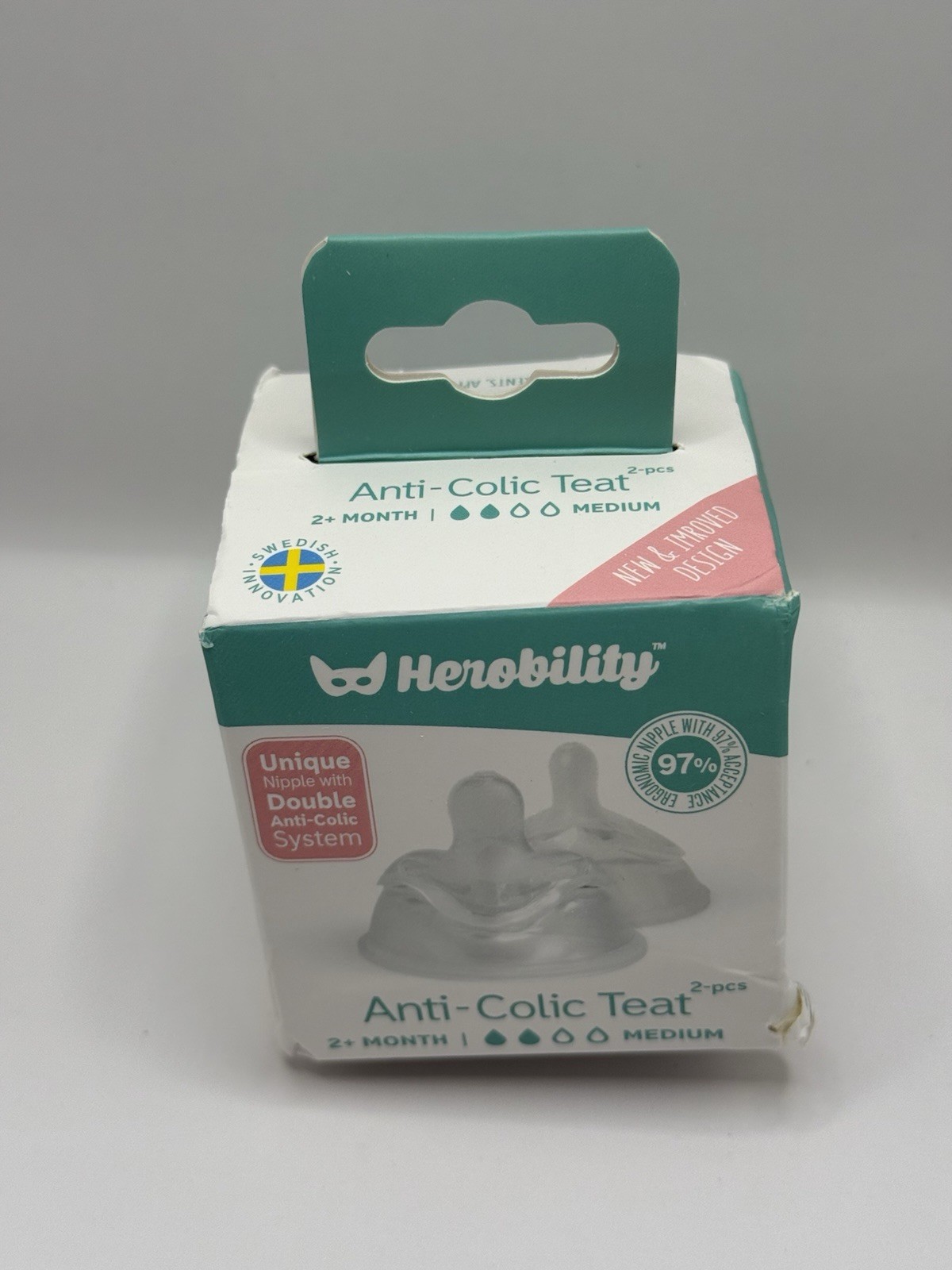 Herobility HERO TEAT Large 2 pc 2 Months Baby Bottle Nipples Sealed Medium