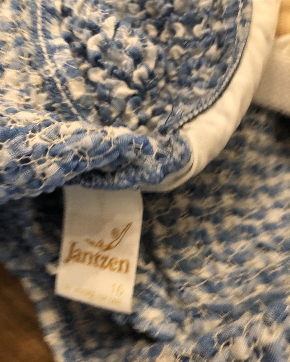 как выглядит Vintage Jantzen Blue White Crinkle Check One Piece Bathing Suit 34 фото