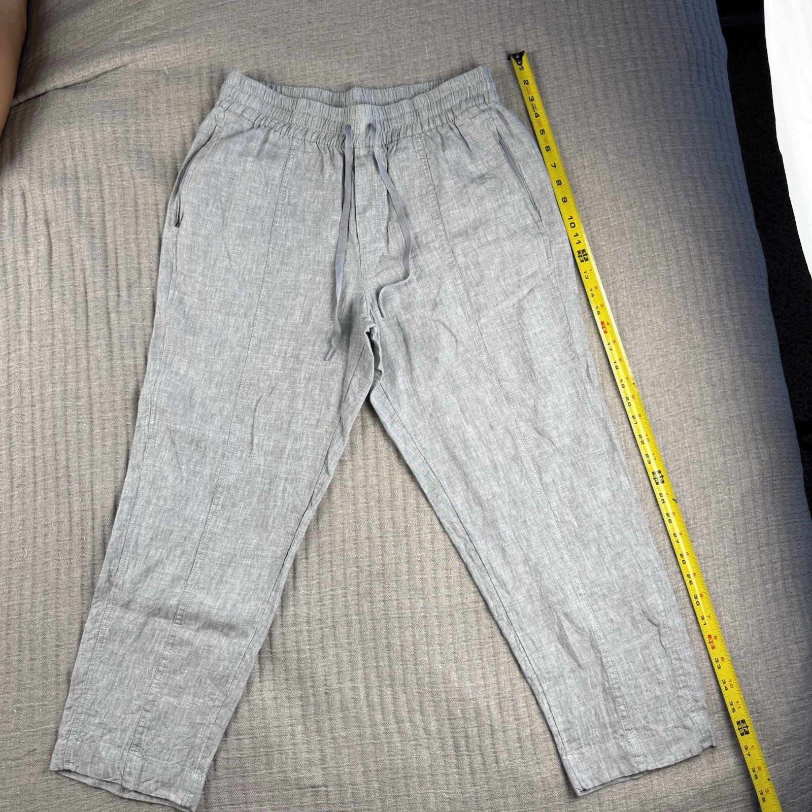 как выглядит Athleta Womens S Retreat 100 Linen High Rise Wide Leg Comfort Gray Pants фото