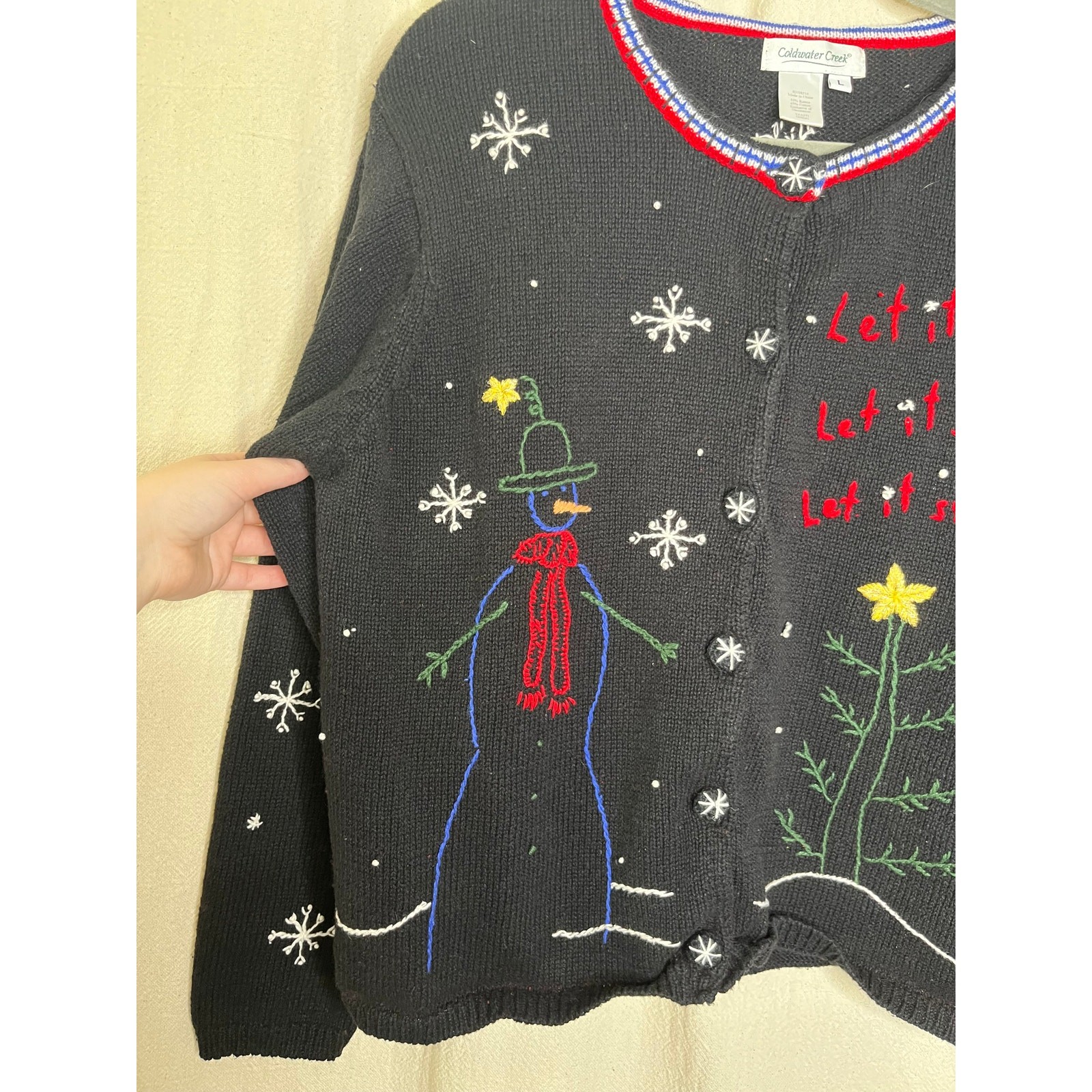 1990s Coldwater Creek Christmas Whimsical Snowman Art To Wear Kidcore Cardigan L