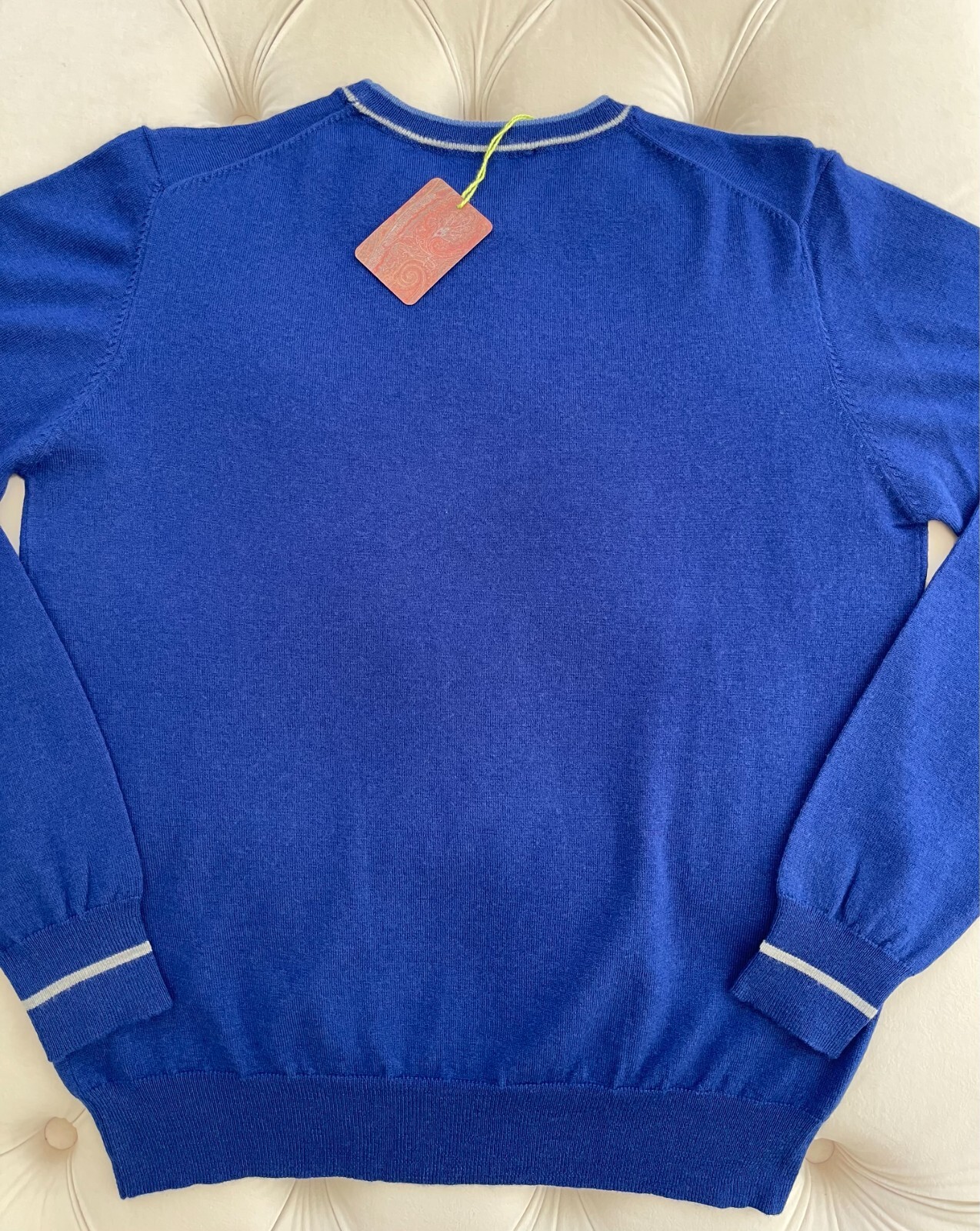 как выглядит Unisex ETRO Milano Pullover Wool Knit Logo Crew Neck Royal Blue Sweater L size фото