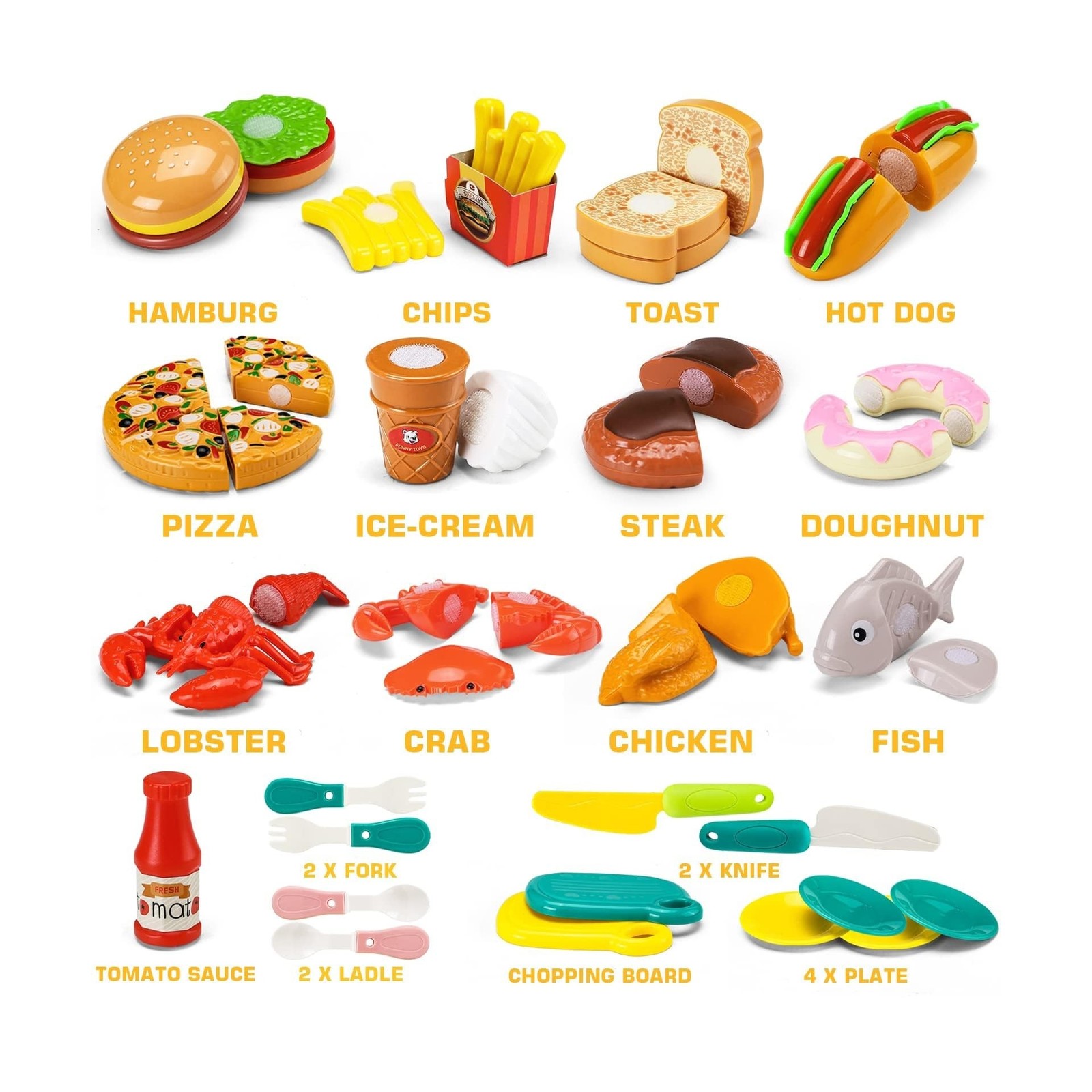 42 Items 87 Pcs Cutting Play Kitchen Set for Kids, Pretend Cooking ... Fast Ship