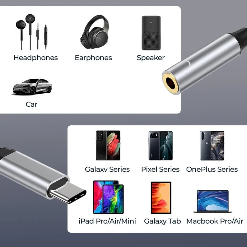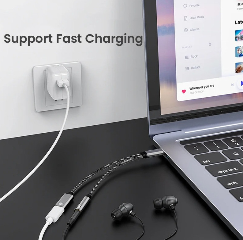 2-in-1 USB C to 3.5mm Jack Audio Charging Adapter for Samsung Huawei
