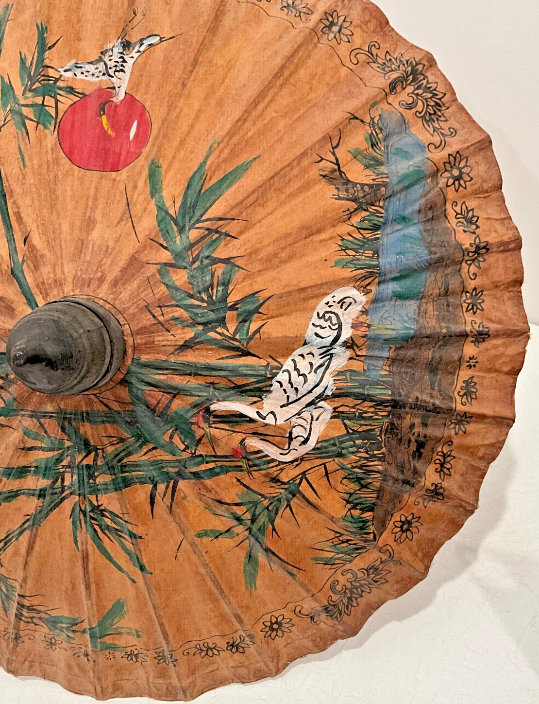 как выглядит Set of 2 Large Vintage Oriental Hand Painted Wagasa Bamboo Paper Parasol фото