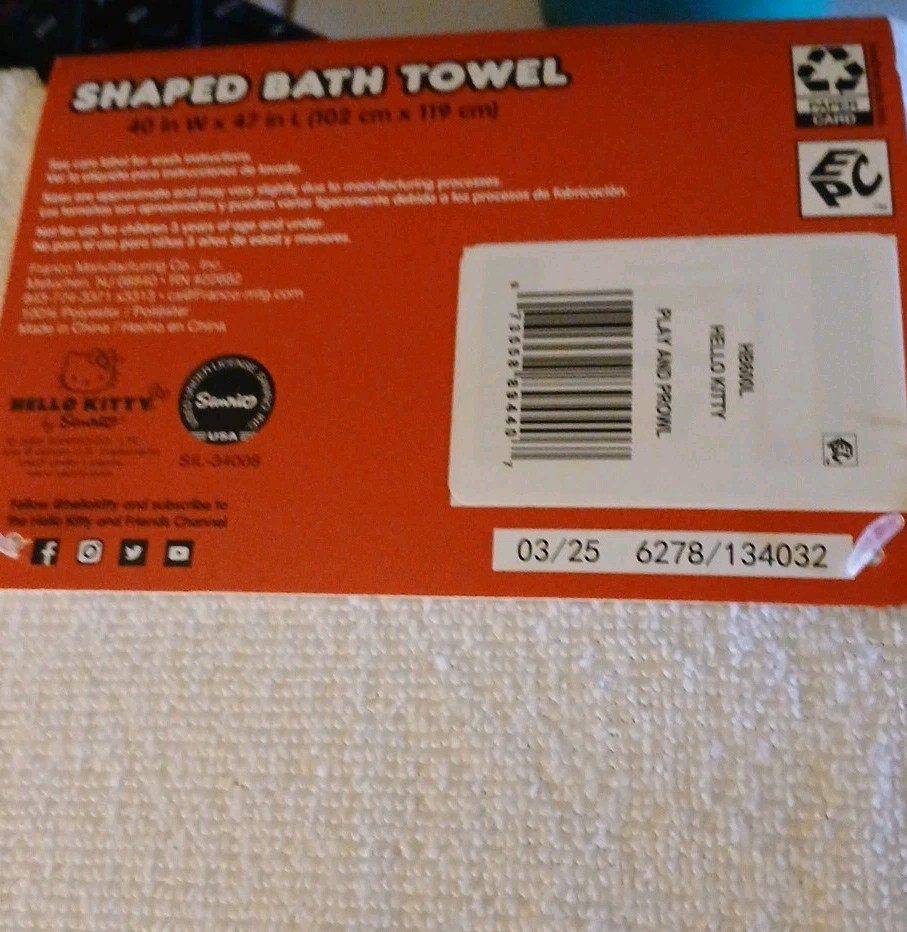 Hello Kitty Children's Bath Towel, Microfiber, 40x47 Shaped Like Hello Kitty