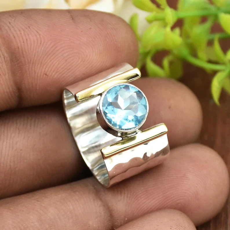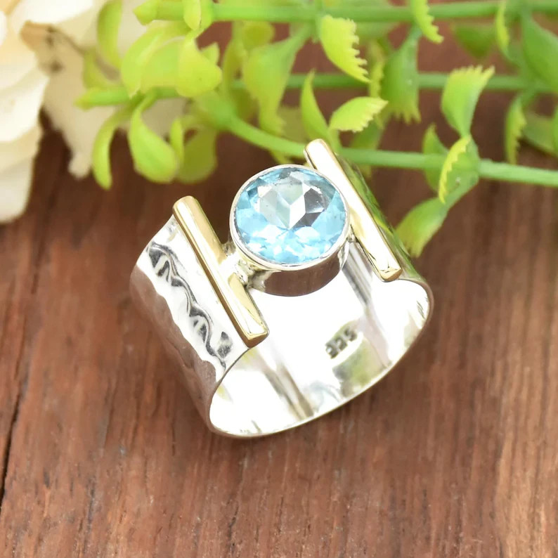 Blue Topaz Gemstone Ring Solid 925 Sterling Silver Birthday Ring All Size R349