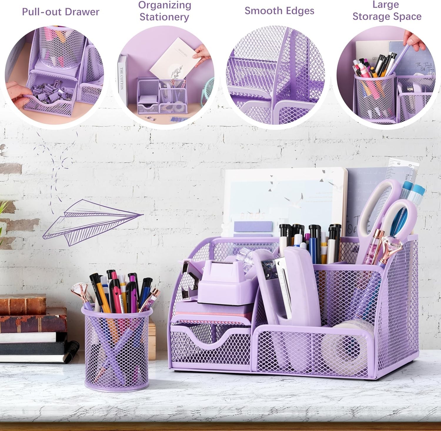 как выглядит "15 Pcs Purple Office Supplies Set Mesh Desk Organizer Accessories Kit Include " фото