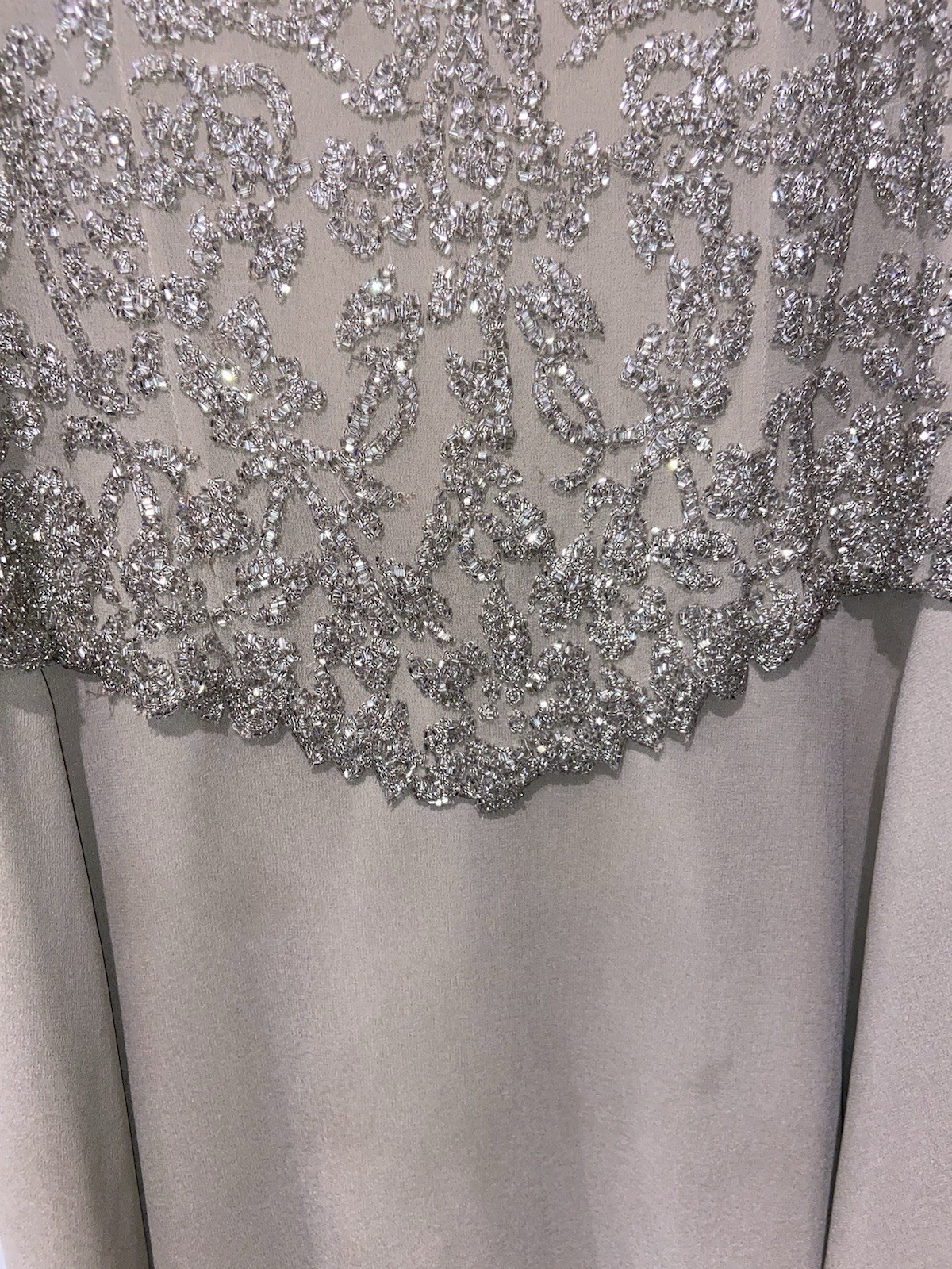 как выглядит Vintage JKara New York Silver Beaded Champagne Formal Gown Size 14 фото