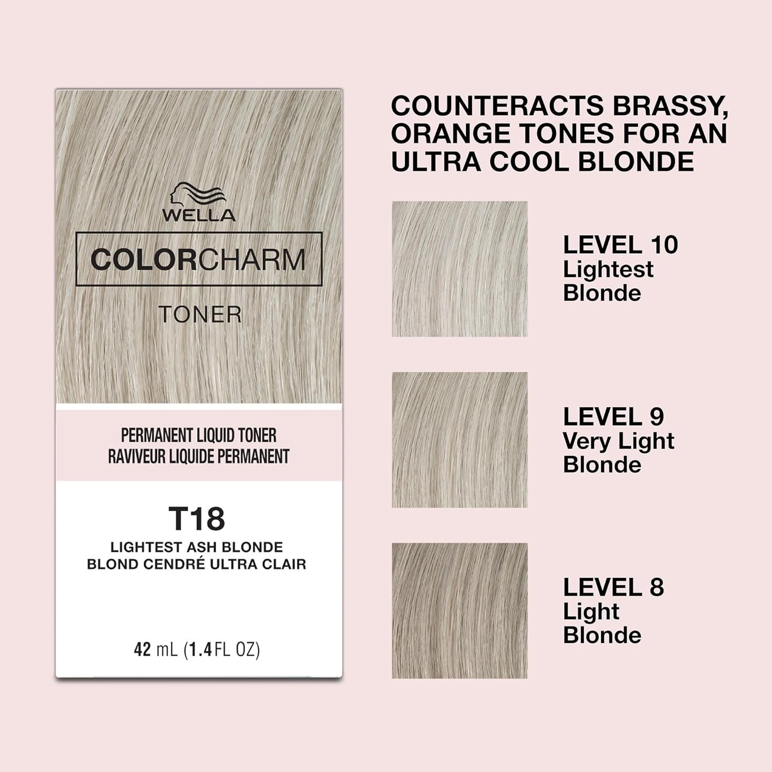 Wella ColorCharm Permanent Hair Toner Liquid 1.4 oz T18 Lightest Ash Blonde