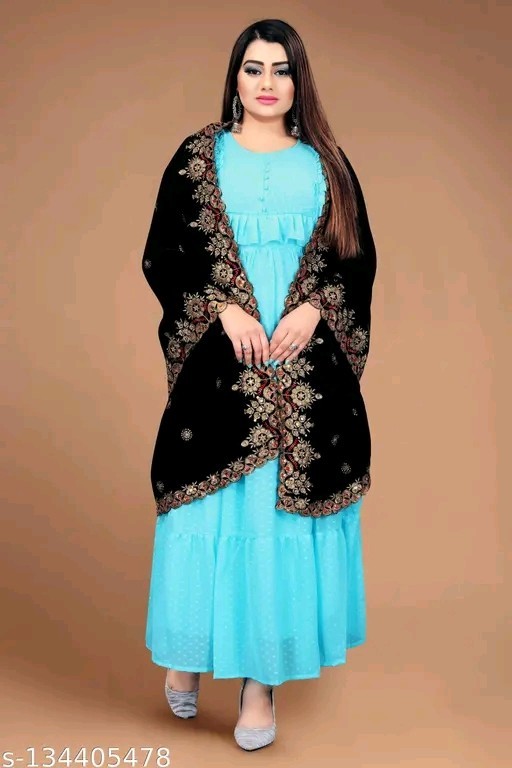 как выглядит Heavy Embroidery Black Velvet Dupatta For Bride And Women 2.3 Mtr фото