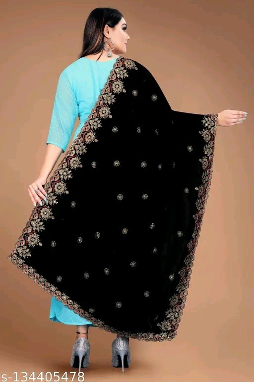 Heavy Embroidery Black Velvet Dupatta For Bride And Women 2.3 Mtr