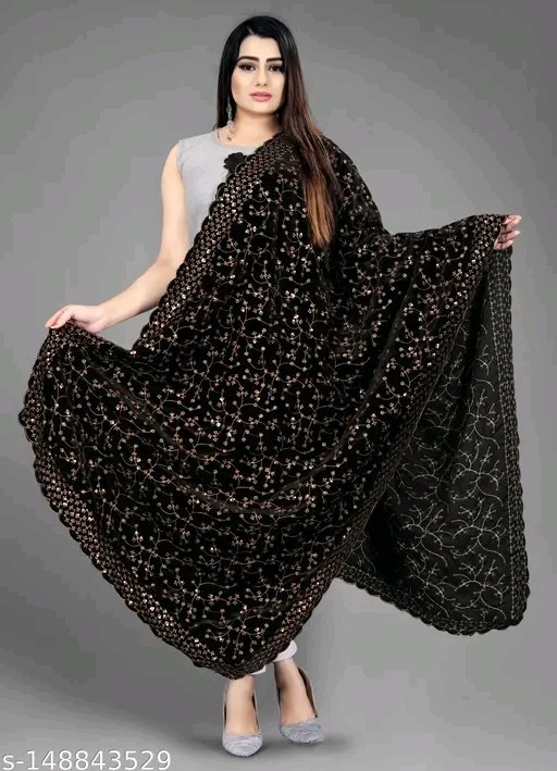 Heavy Embroidery Black Velvet Dupatta For Bride And Women 2.3 Mtr