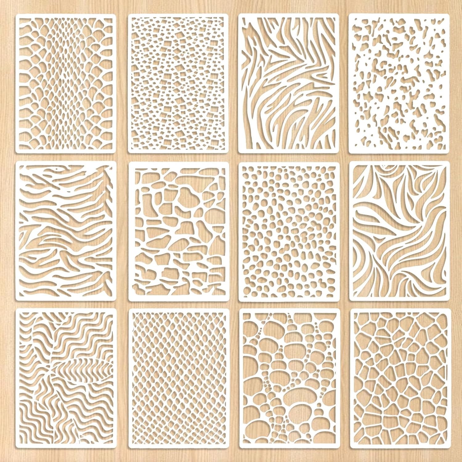 Jeffdad 12 Pcs Stencils for Crafts Reusable, Texture 8.27 x 5.9 Inch
