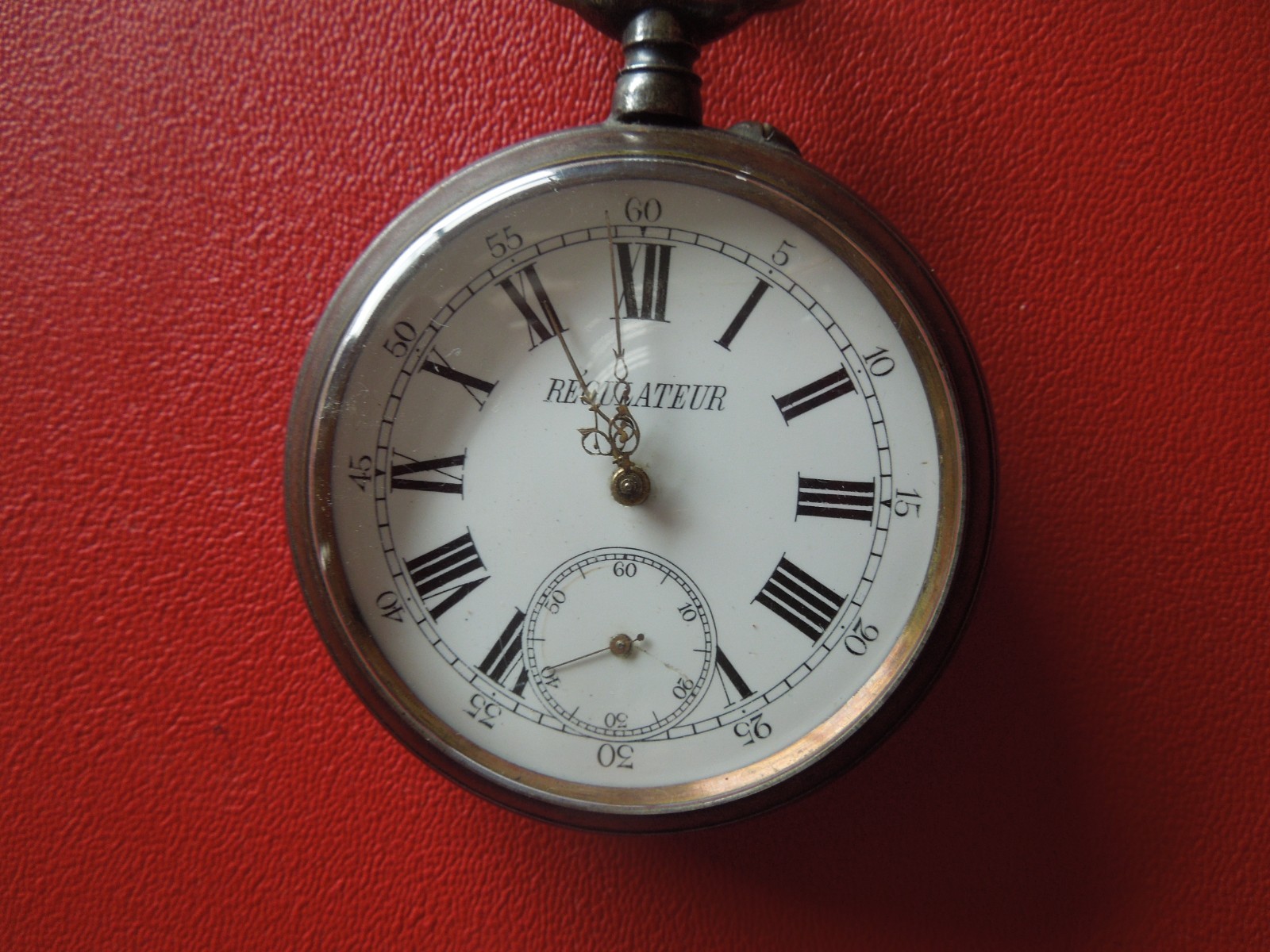 как выглядит J7135 POCKET WATCH REGULATEUR GUNMETAL LARGE SIZE RUNS WELL SEE DESCRIPTION фото