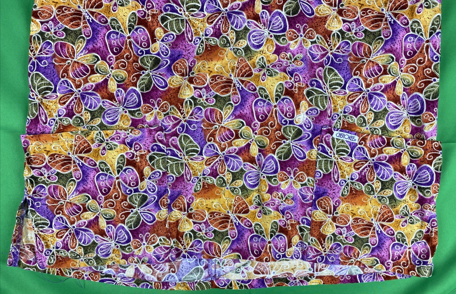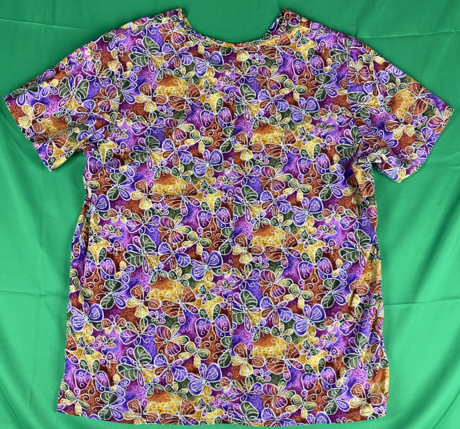 как выглядит Large Vibrant Colorful Spring Time Butterfly Cherokee Scrub Top фото