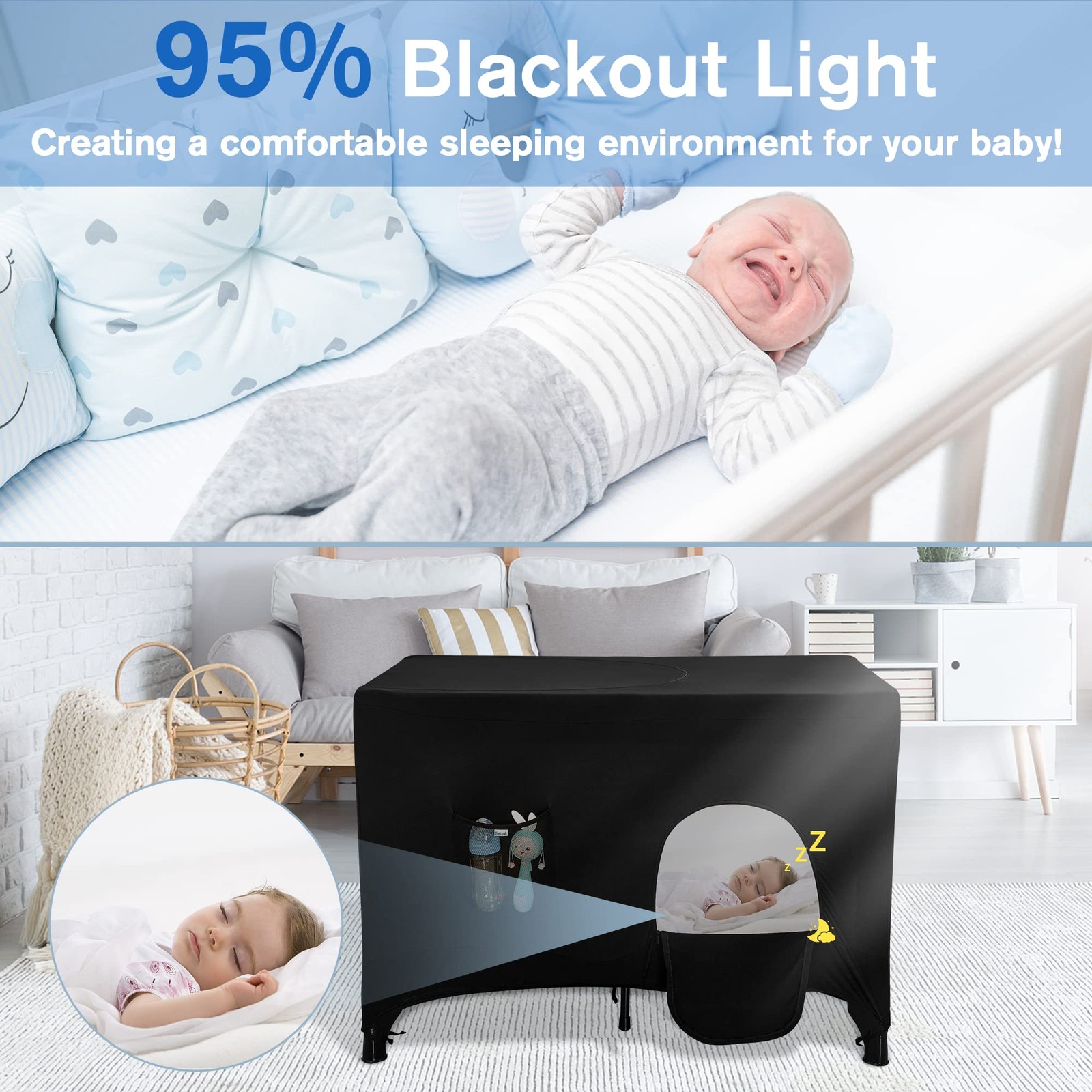Pack n Play Blackout Cover for Travel Crib - Breathable Tent With Portable St...