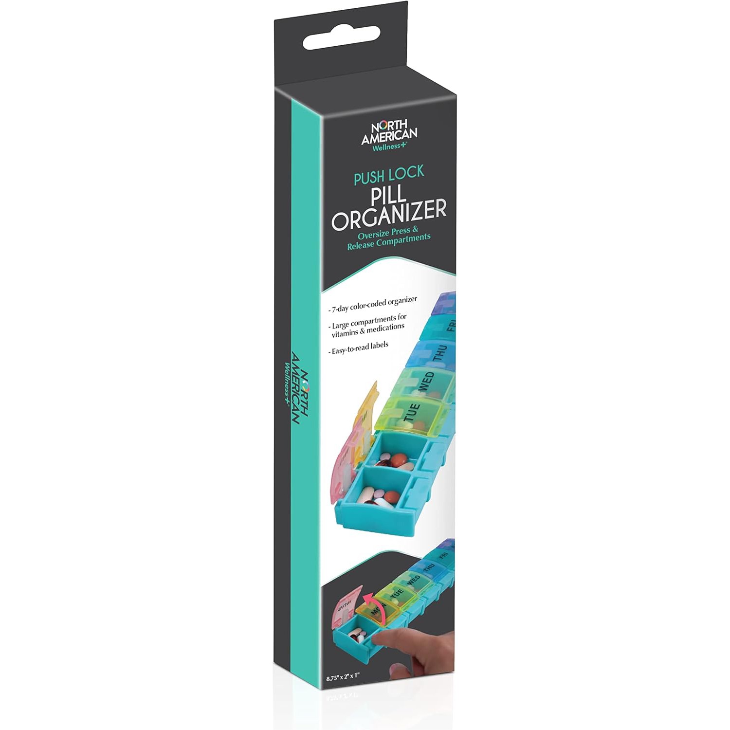 North American Wellness Push Lock Pill Organizer Case 7-Day Color Coded, 2 Pack
