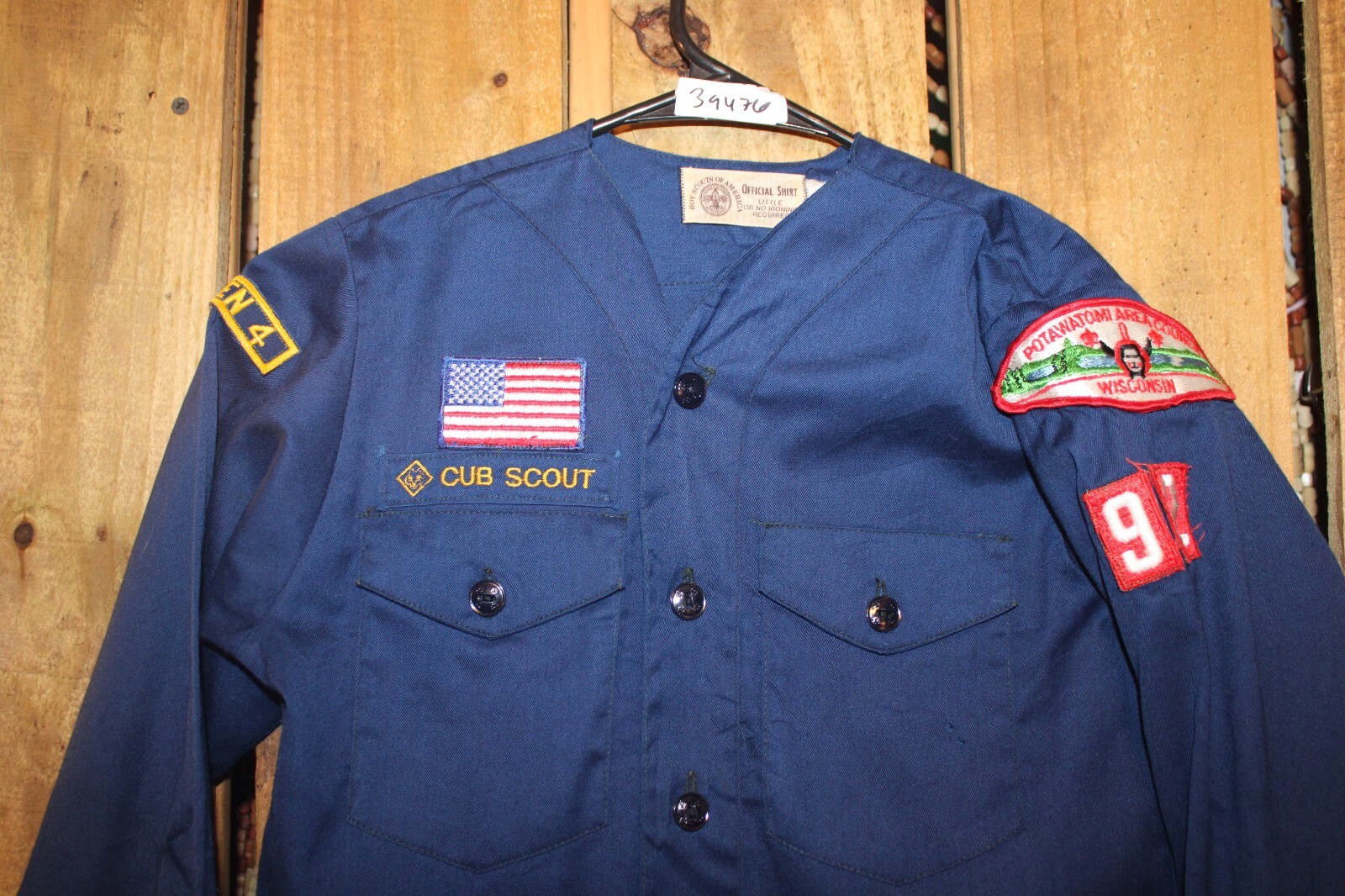 как выглядит Boy Scouts of America BSA Youth Shirt Medium  Vintage Blue Cub Sewn on ptchs фото