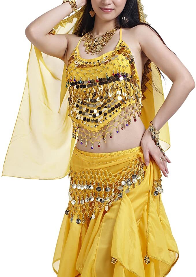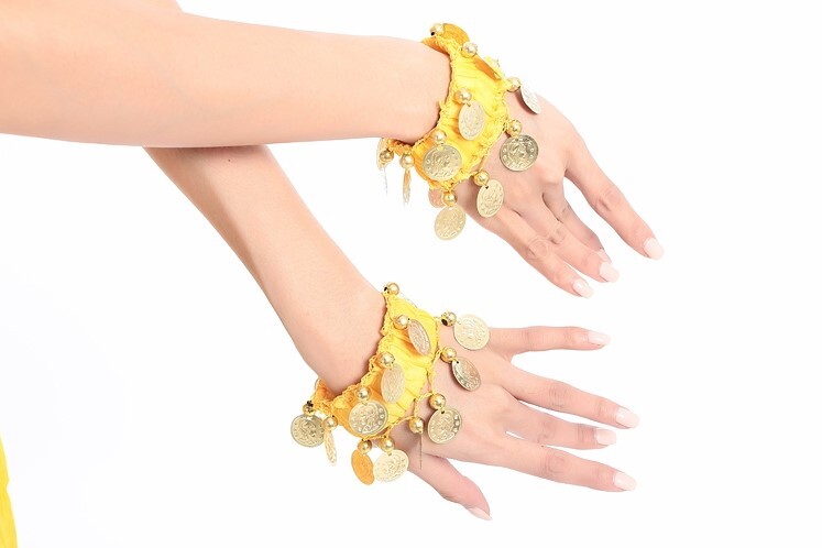 как выглядит Yellow Gold Coin Belly Dance Hip Skirt with Bracelets Scarf Wrap Belt Hipscarf фото