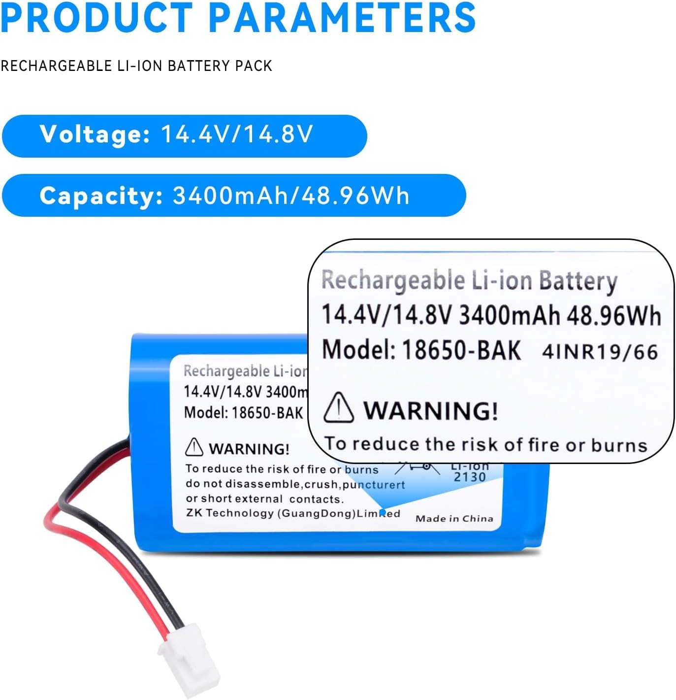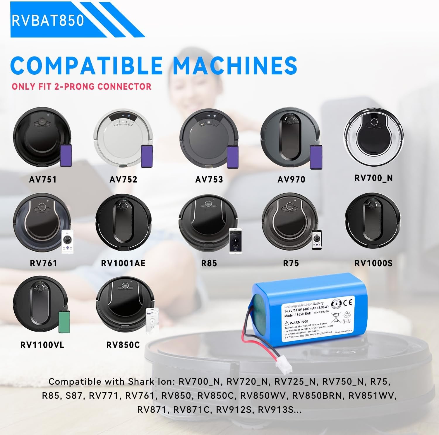 3400mAh Replacement RVBAT850 Battery for Shark Ion Robot R75 R85 R850 RV761