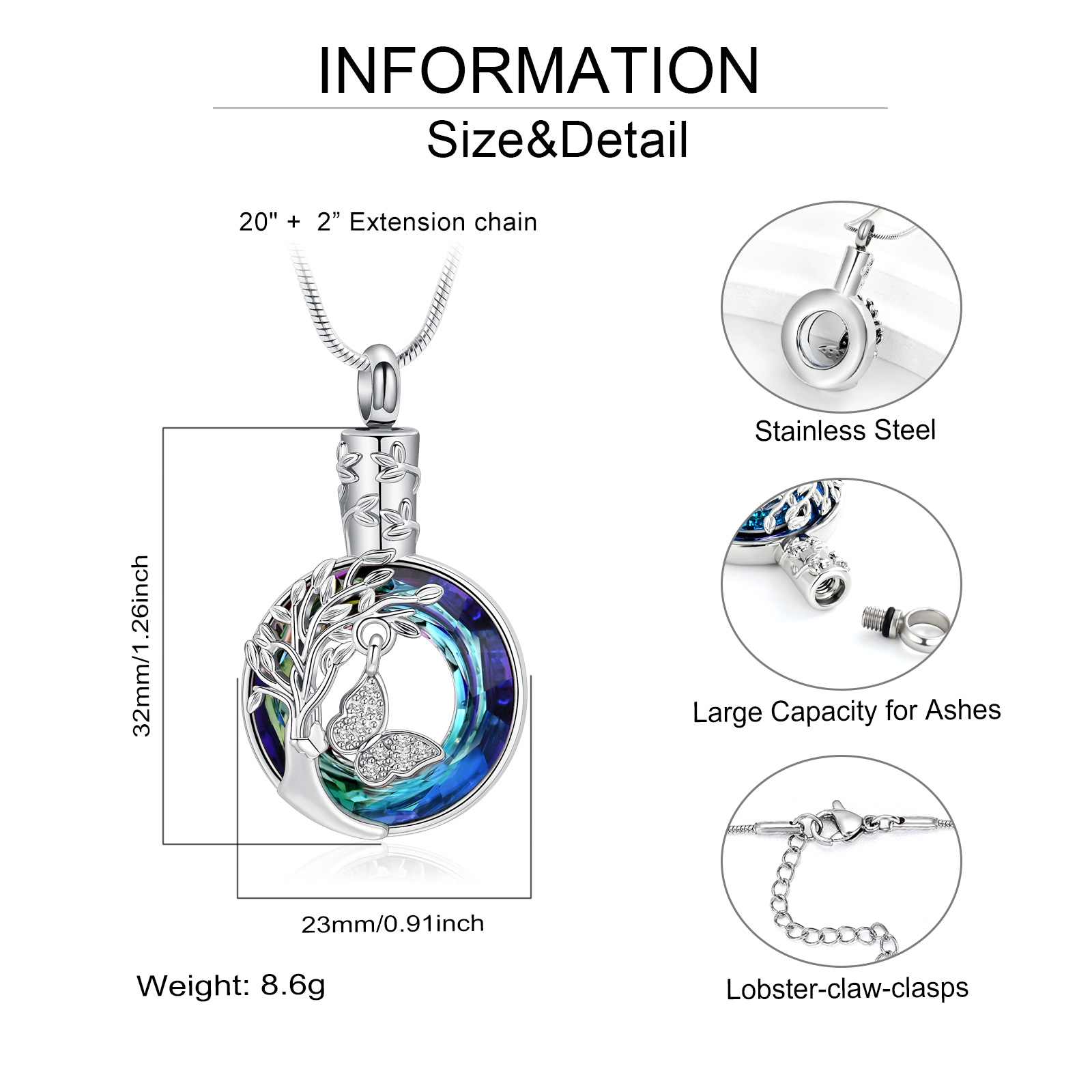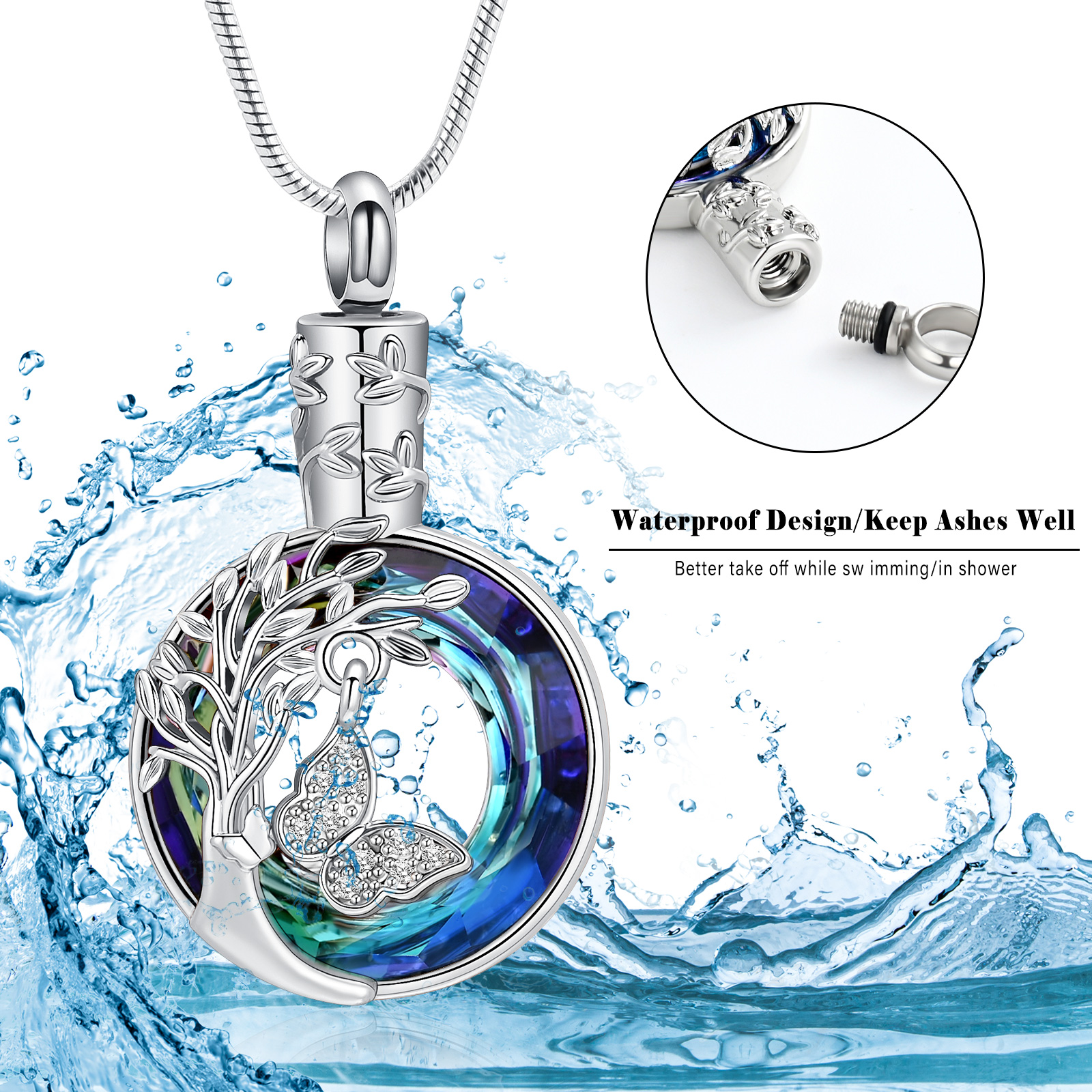 Butterfly Urn Necklaces for Ashes Crystal Circle Ash Urn Jewelry for Human / Pet