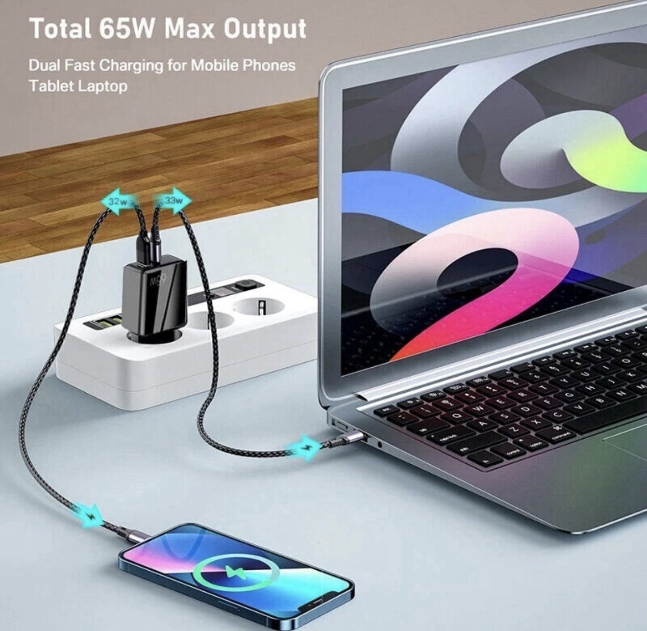 Cargador 65W Cable 5A 1m/2m USB-C para Samsung Note 20 Ultra S21