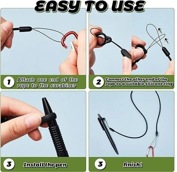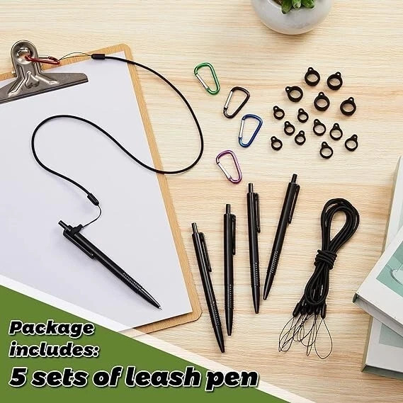 5 Sets 24 Pen Leash with Silicone Lanyard Holder, Neck Strap, Metal Carabiner