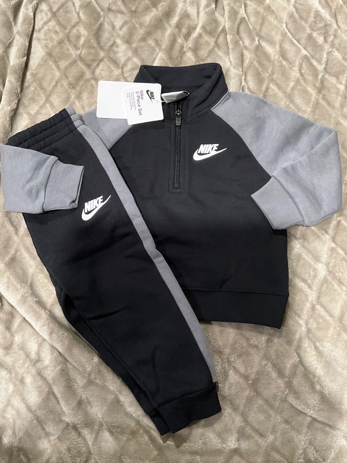 как выглядит New Nike Toddler Boy s Black Gray Sweat Suit Sizes 12, 18, 24 months фото
