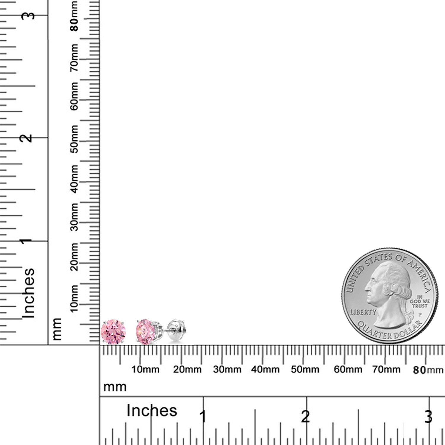 как выглядит 14K White Gold Stud Earrings 3.00 Ct Round 6mm Pink Zirconia фото