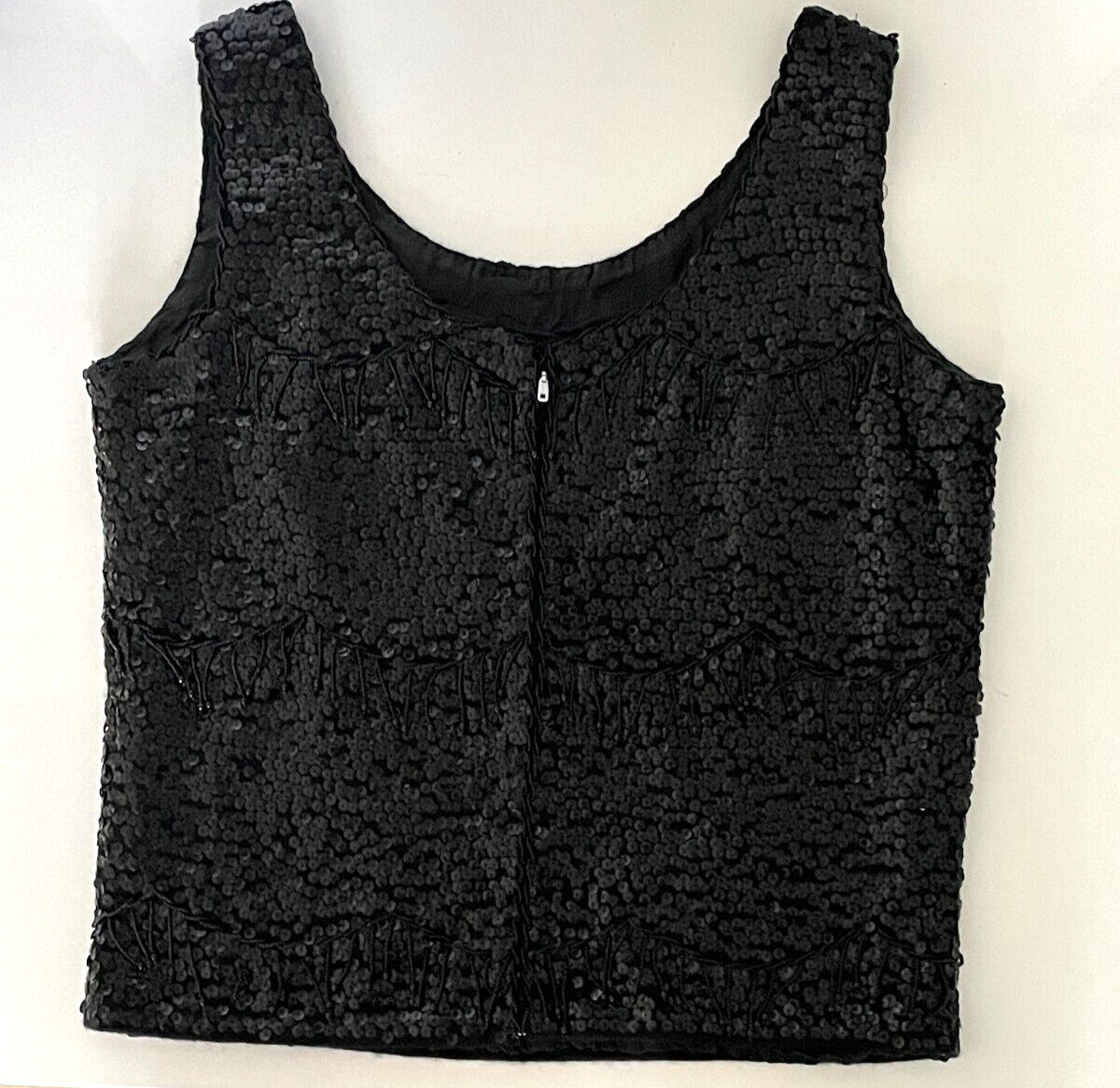 как выглядит VTG 1960s Sequin Tank Top Beaded Fringe Sleeveless Blouse Size Med Hong Kong JCS фото