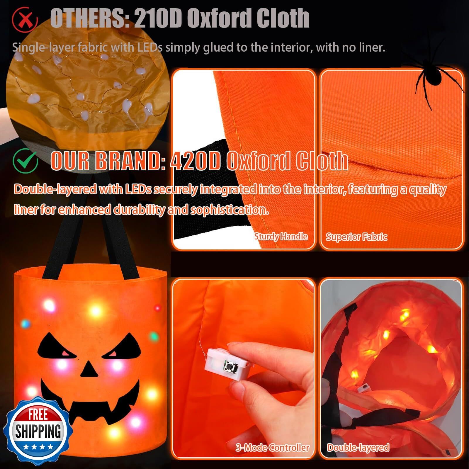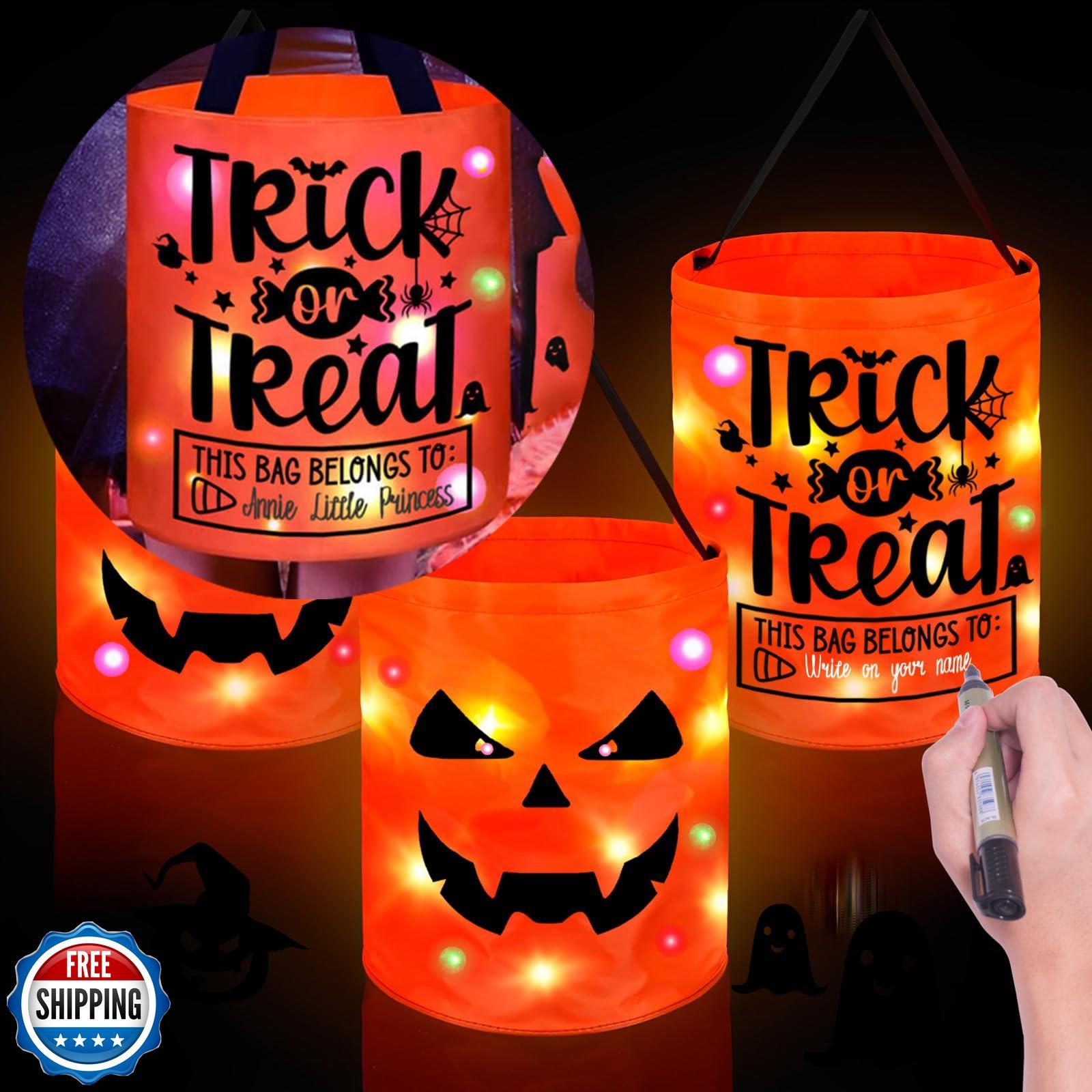 Halloween Trick or Treat Bags Candy Bucket Basket Decoration, Light Up Ghost