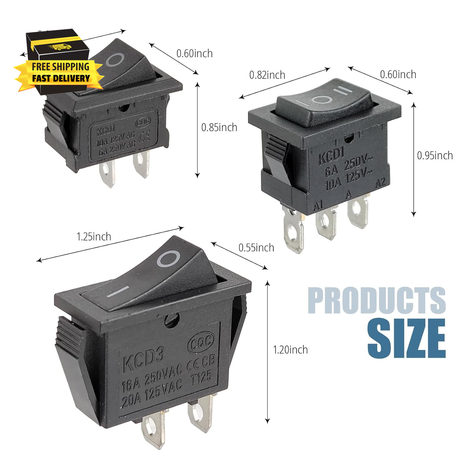 как выглядит 6Pcs Rocker Switch On/Off 2 Position 2 Pin, AC 6A/250V, 10A/125V,KCD1 Toggle Pow фото