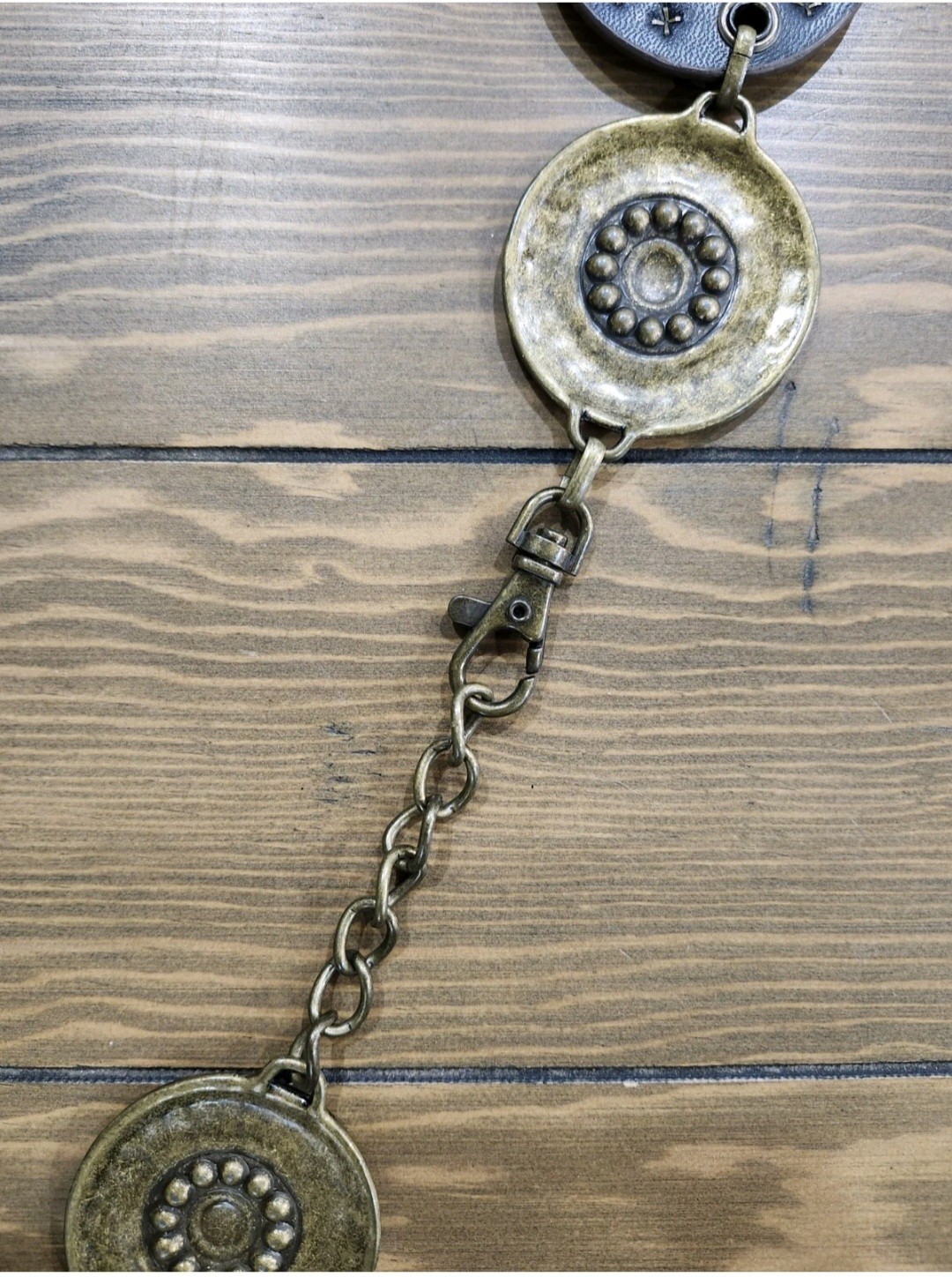 Concho Belt Women's Rhinestone Metal Leather Round Medallion 35 Size Medium