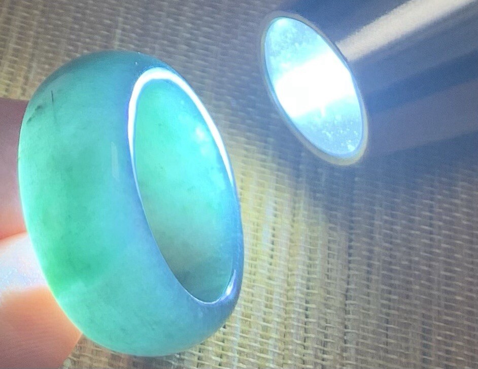 как выглядит Video Certified Green Natural A Jadeite Jade Circle Ring NO. 7.5 418246 фото